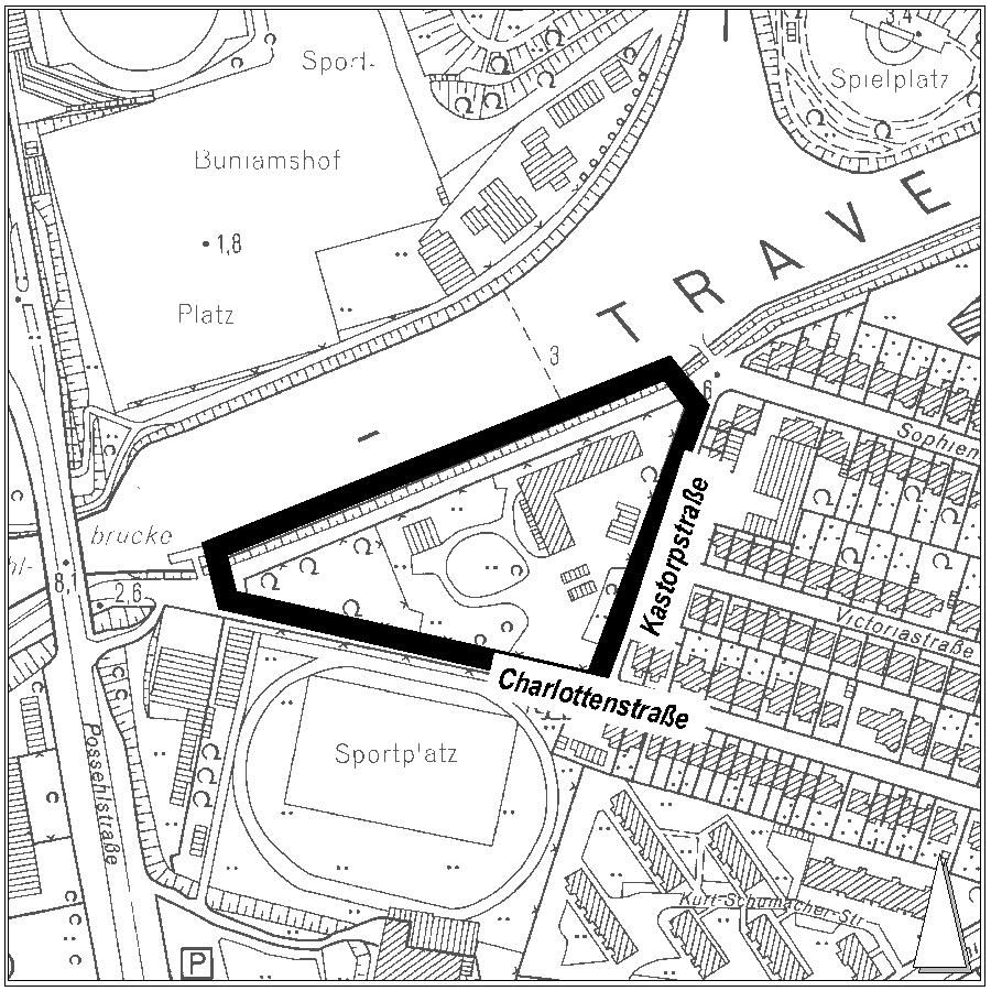 Der Bauausschuss der Hansestadt Lübeck hat in seiner Sitzung am 14.07.2008 beschlossen, dass für das nachfolgend dargestellte Gebiet die 52. Flächennutzungsplanänderung der Hansestadt Lübeck für den Teilbereich „Kastorpplatz“ im Stadtteil St. Jürgen und der Bebauungsplan 02.36.00 – Kastorpplatz – aufgestellt werden.