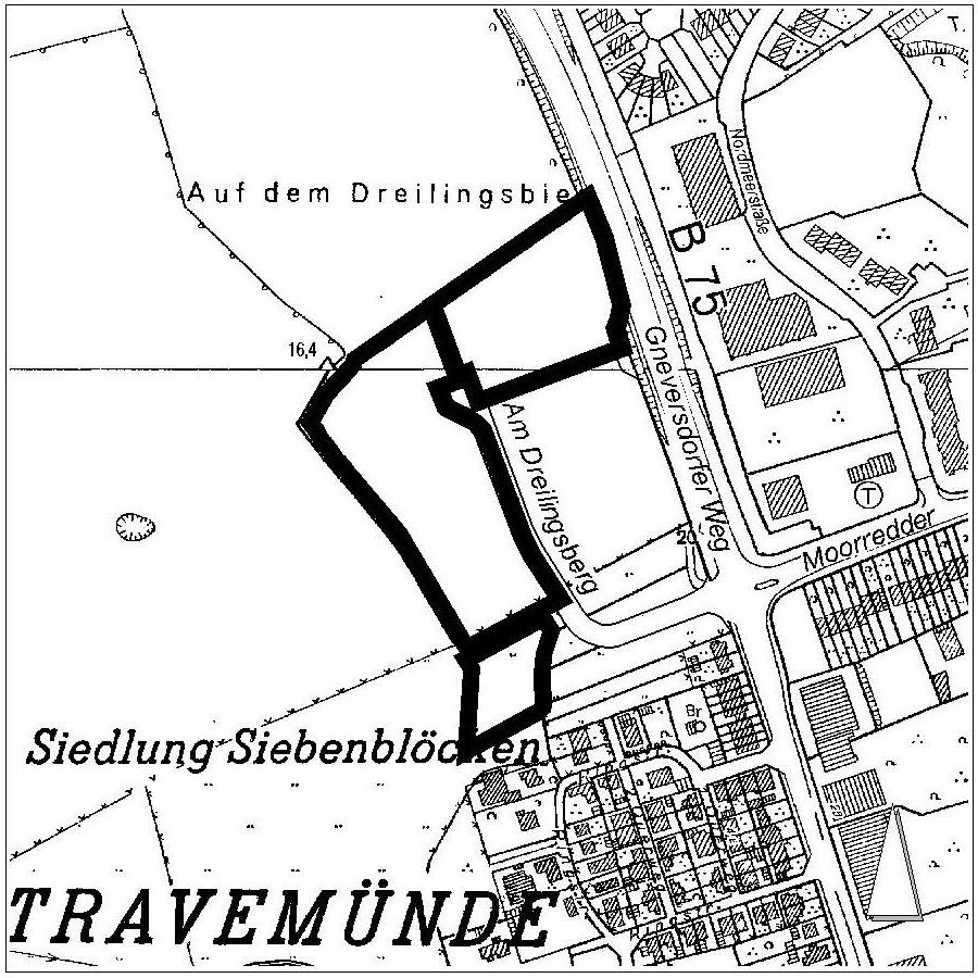 Der räumliche Geltungsbereich dieses Bebauungsplanes liegt im Stadtteil Travemünde, Gemarkung Teutendorf, Flur 3 und umfasst die Flurstücke 27/17 tlw. und 27/20 tlw..