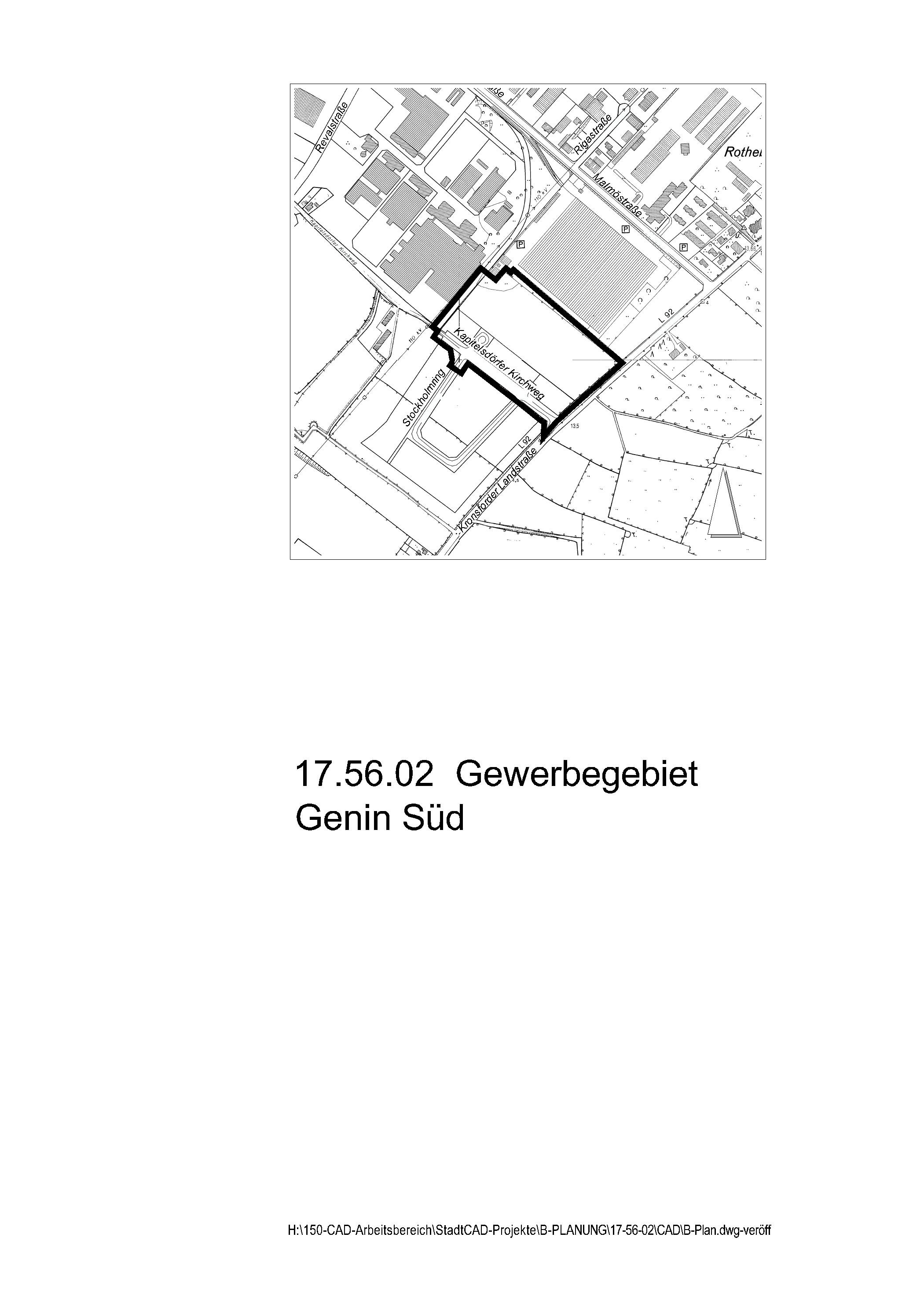 hier: Bekanntmachung des Bebauungsplanes 17.56.02 – Gewerbegebiet Genin Süd – nach