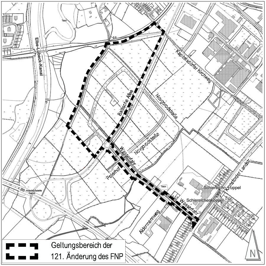 1. Genehmigung der 121. Änderung des Flächennutzungsplanes für den Teilbereich „Baltische Allee / Wasserfahr“