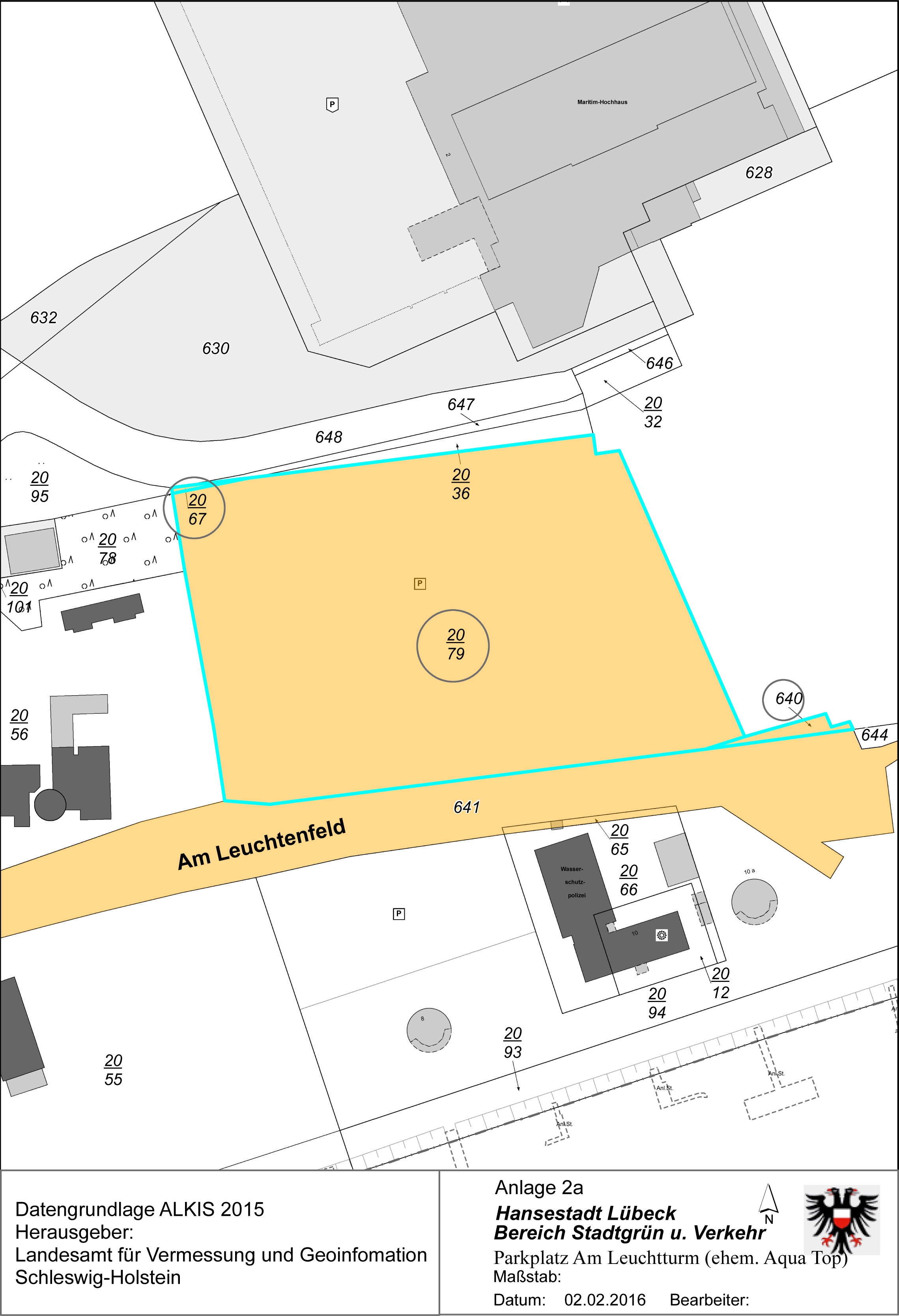 Einziehung des Parkplatzes Am Leuchtturm (ehem. Aqua Top) gemäß Plan: Gemarkung Travemünde, Flur 3, Flurstücke 20/79, 20/67 und 640 (ehemals 137 tlw.)