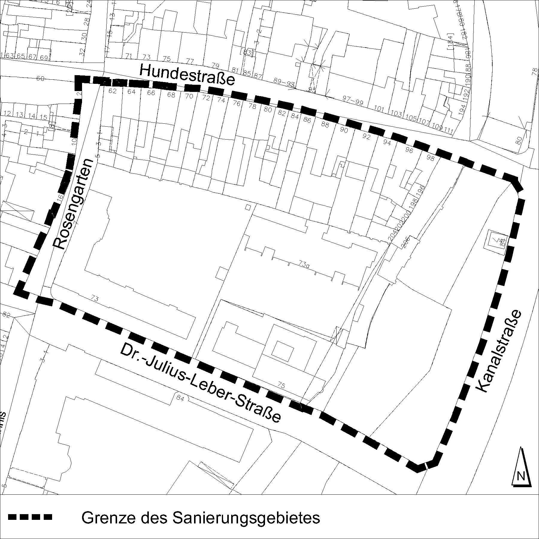 Hundestraße, im Osten von der Kanalstraße, im Süden von der Dr.-Julius-Leber-Straße und im Westen von