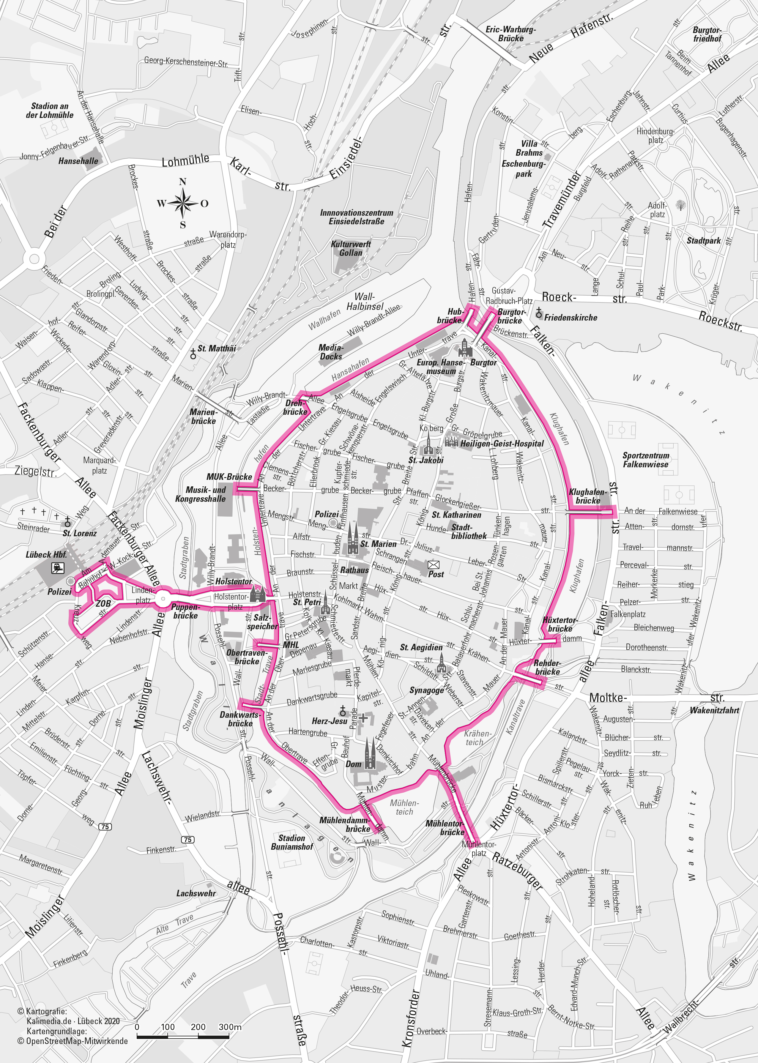 Auf der gesamten Lübecker Altstadtinsel umgeben von den Straßen