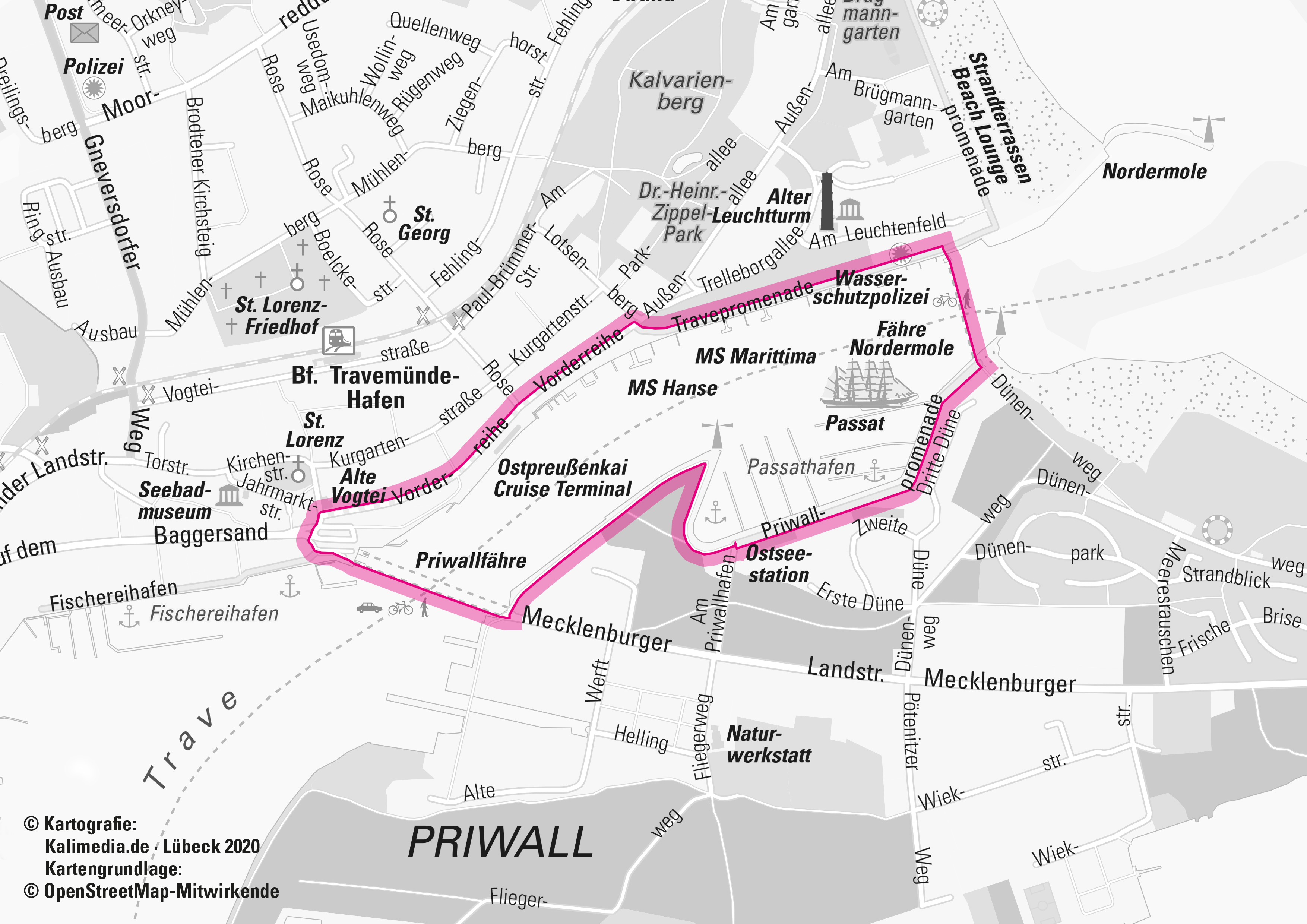Im Stadtteil Lübeck-Travemünde und dem Priwall in folgenden Bereichen / Straßen: