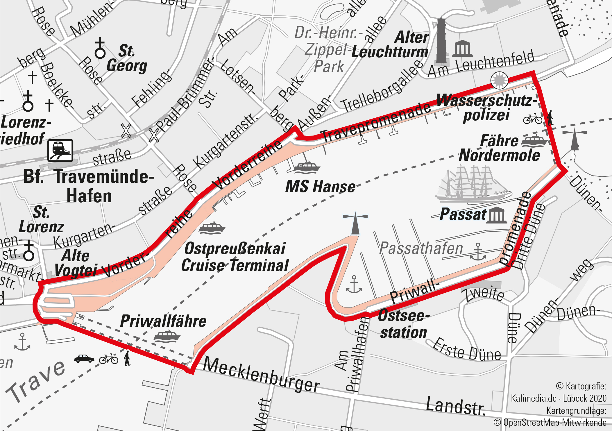 Im Stadtteil Lübeck-Travemünde und dem Priwall in folgenden Bereichen / Straßen: