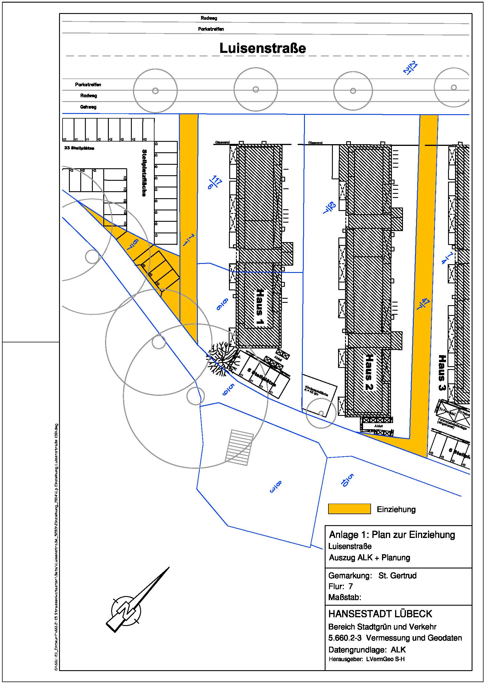 Zwei öffentliche Wege und eine Dreiecksfläche östlich der Luisenstraße bei den Gebäuden 2-36: