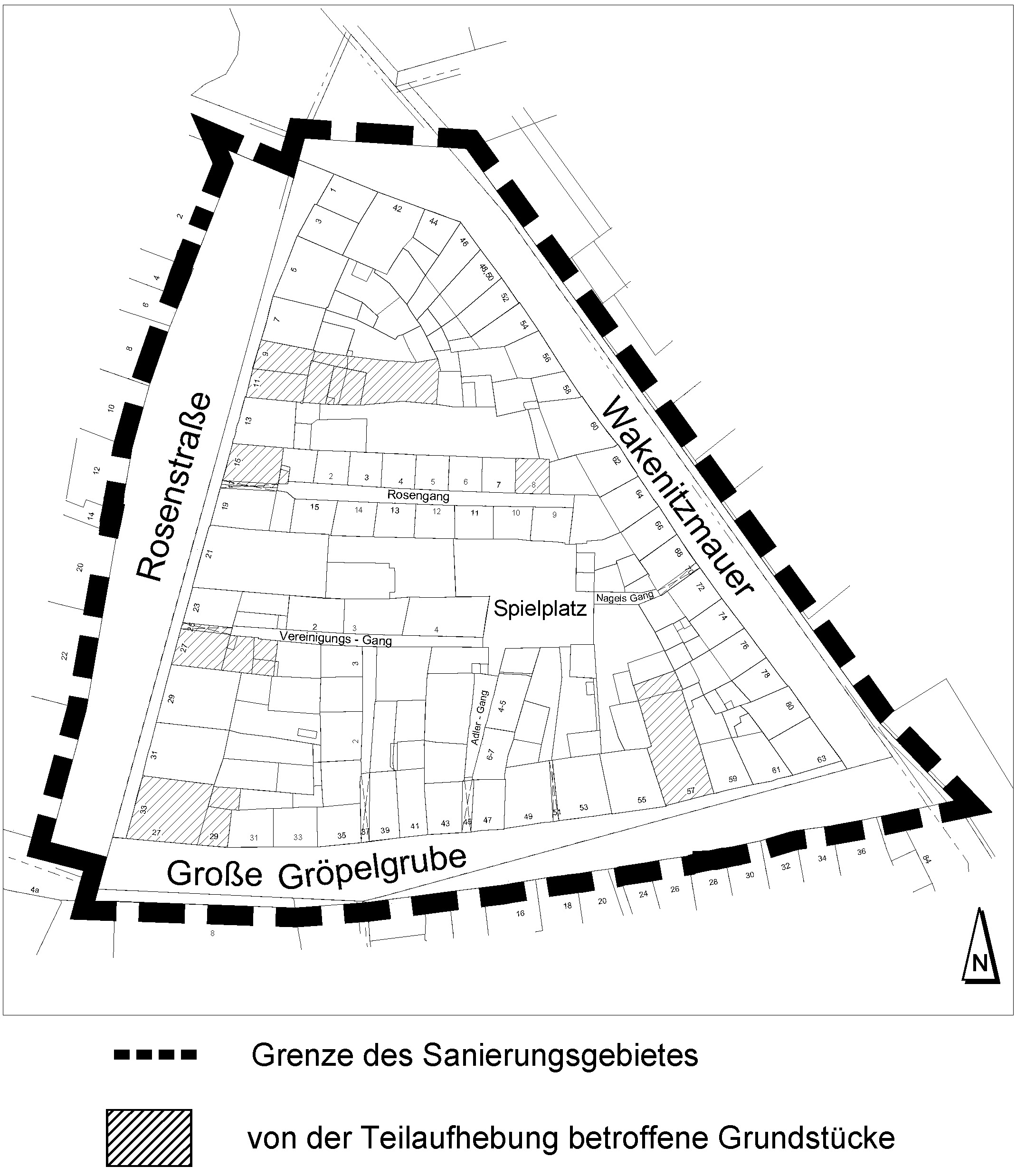 Sanierungsgebietes „Block 4 - Rosenstraße“, das begrenzt wird im Norden von der Straße Rosenpforte, im