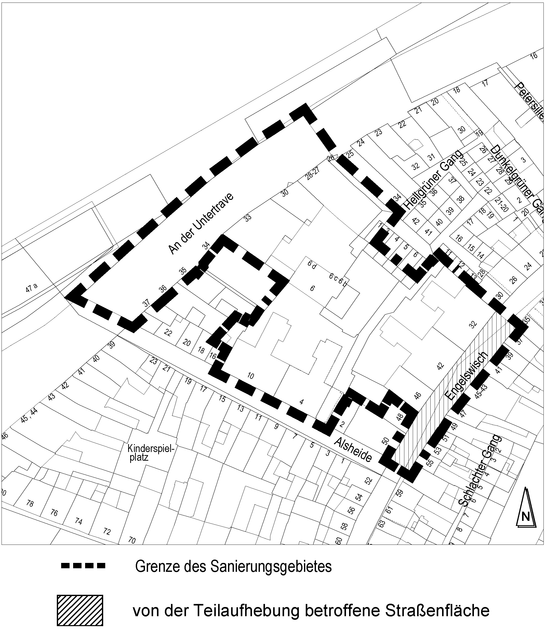 Sanierungsgebietes „Block 95 – Ersatzgebiet Alsheide“, das begrenzt wird im Norden von dem Hellgrünen
