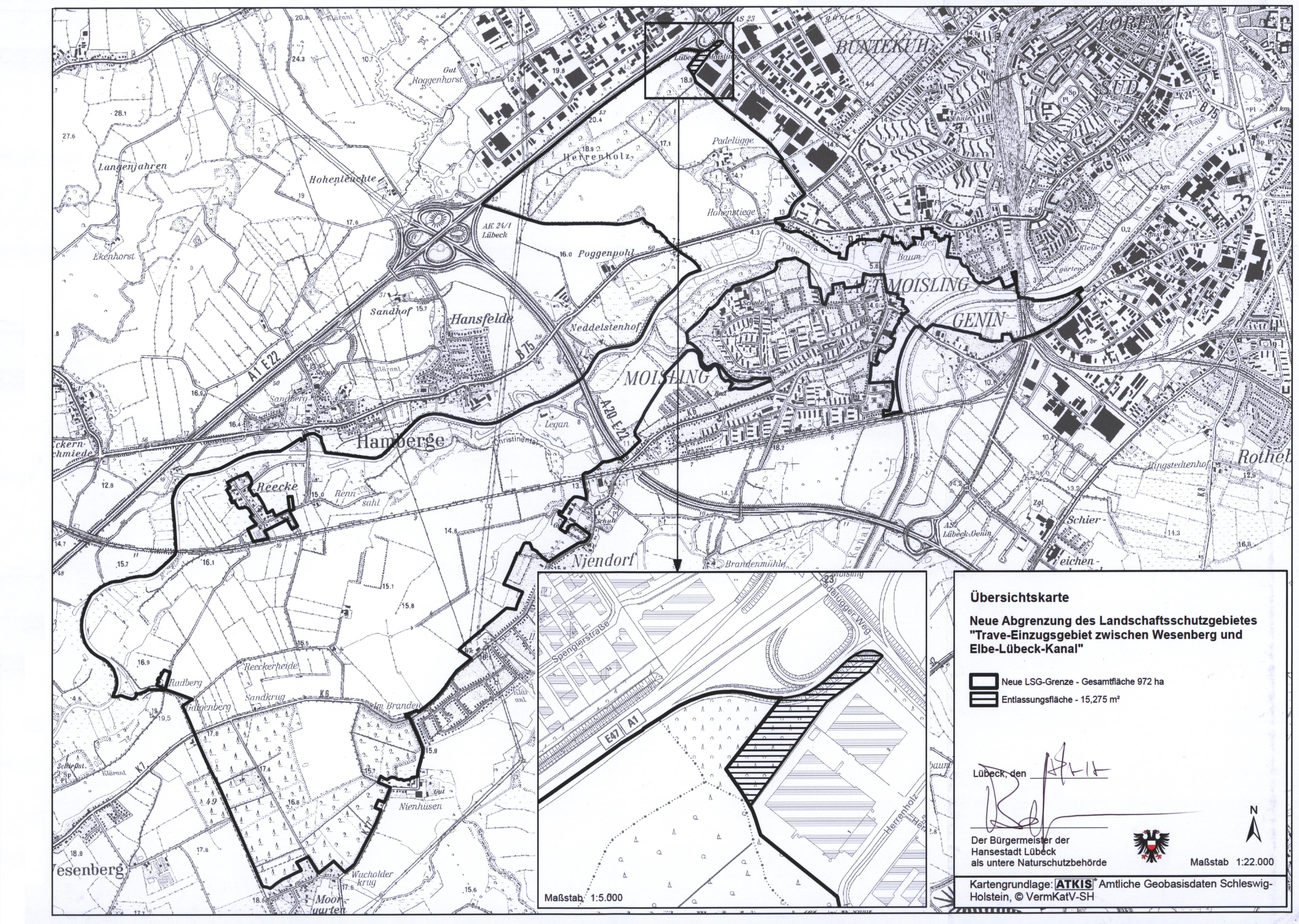 „In der dieser Verordnung als Anlage beigefügten Übersichtskarte im Maßstab 1 : 22.000 sind die Grenzen des Landschaftsschutzgebietes als schwarze durchgezogene Linie dargestellt.“