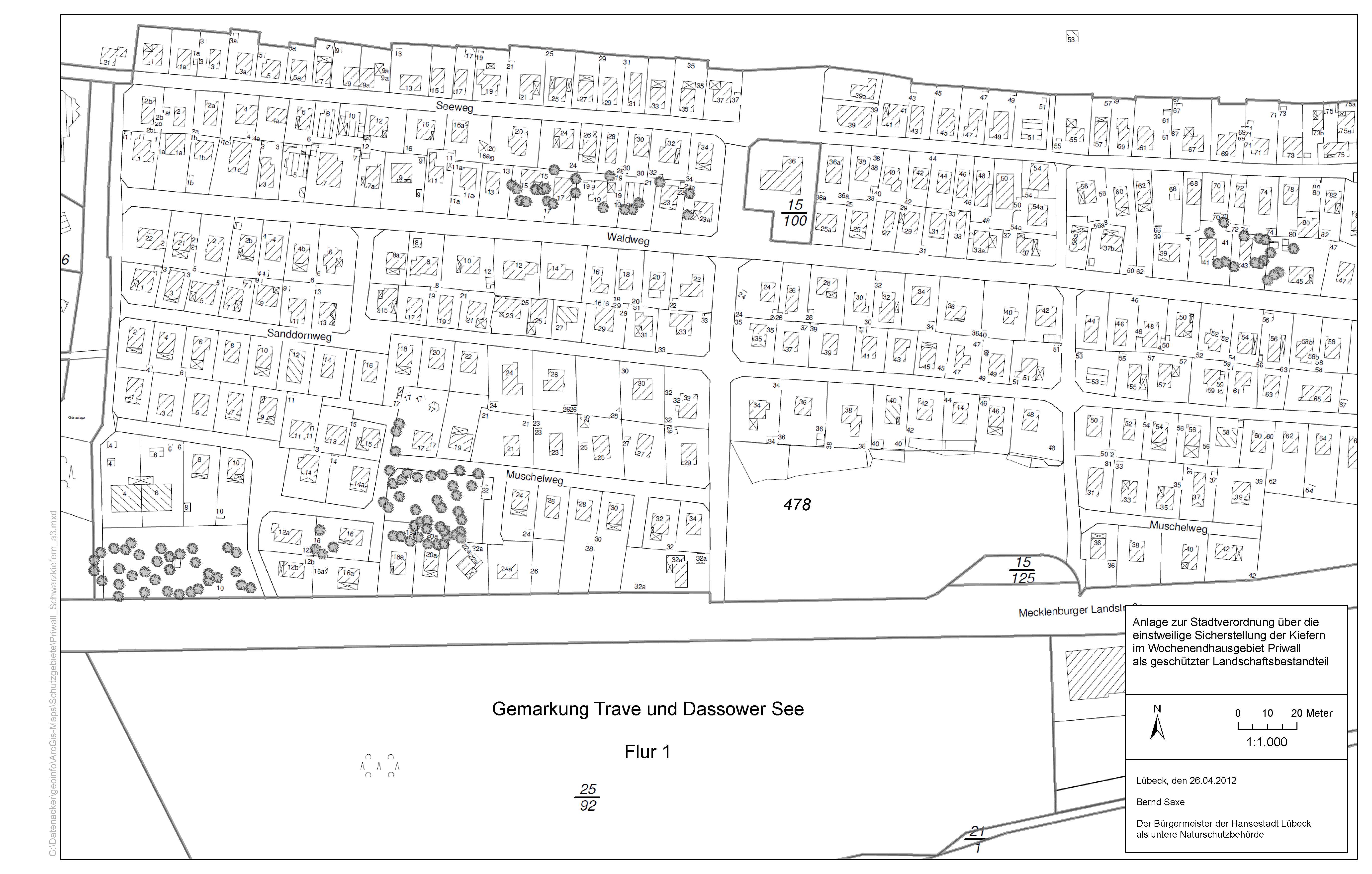 (1) Die auf dem Flurstück 478, Flur 1, Gemarkung Trave Dassower See stehenden Kiefern werden auf den im
