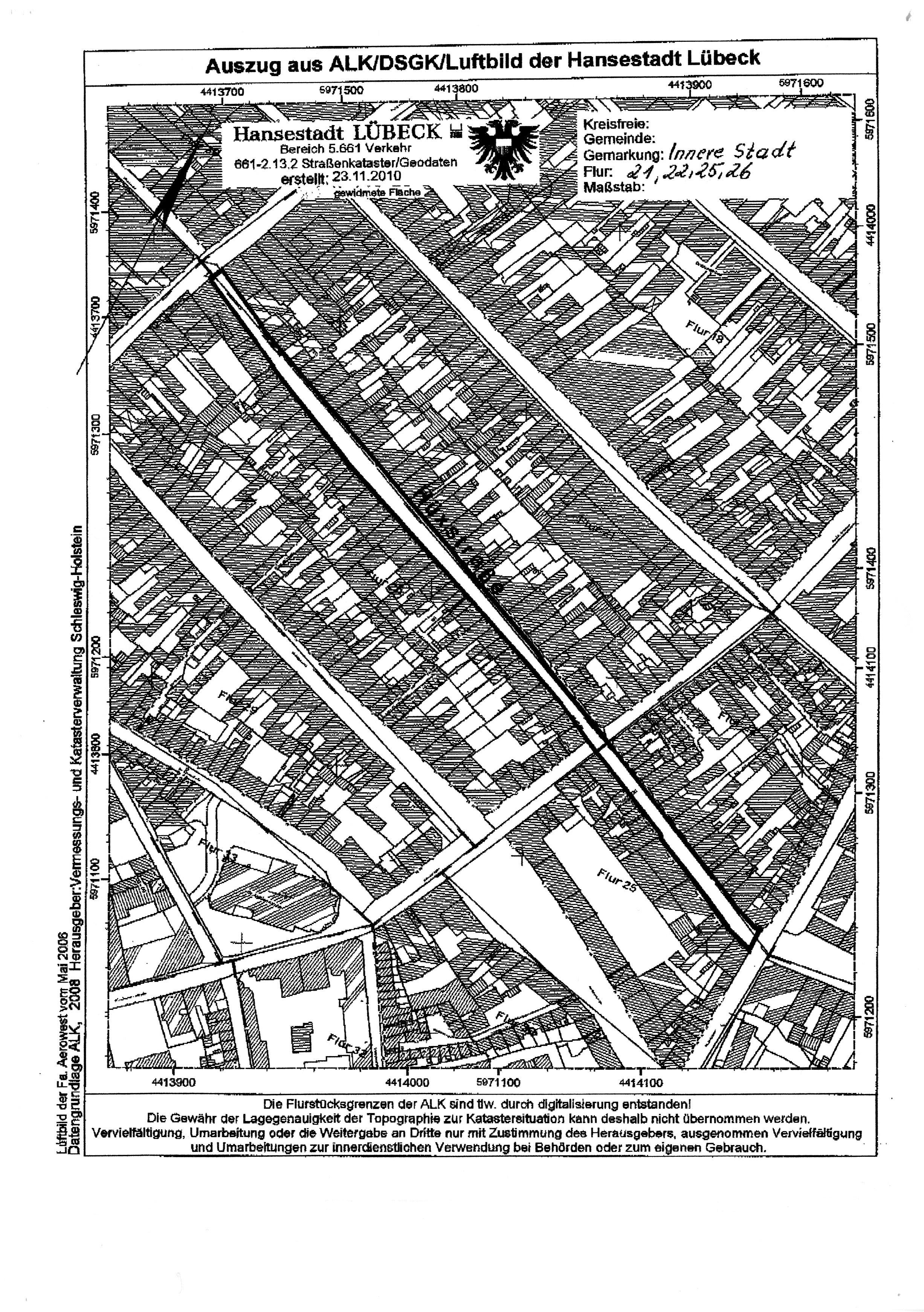 Nach § 8 Abs. 1, Satz 2, des Straßen- und Wegegesetzes (StrWG) des Landes Schleswig-Holstein in der Fassung der Bekanntmachung vom 25.11.2003 (GVOBl. Schl.-H. S. 631) wird in der Hansestadt Lübeck folgende öffentliche Verkehrsfläche gemäß Plan teileingezogen:
