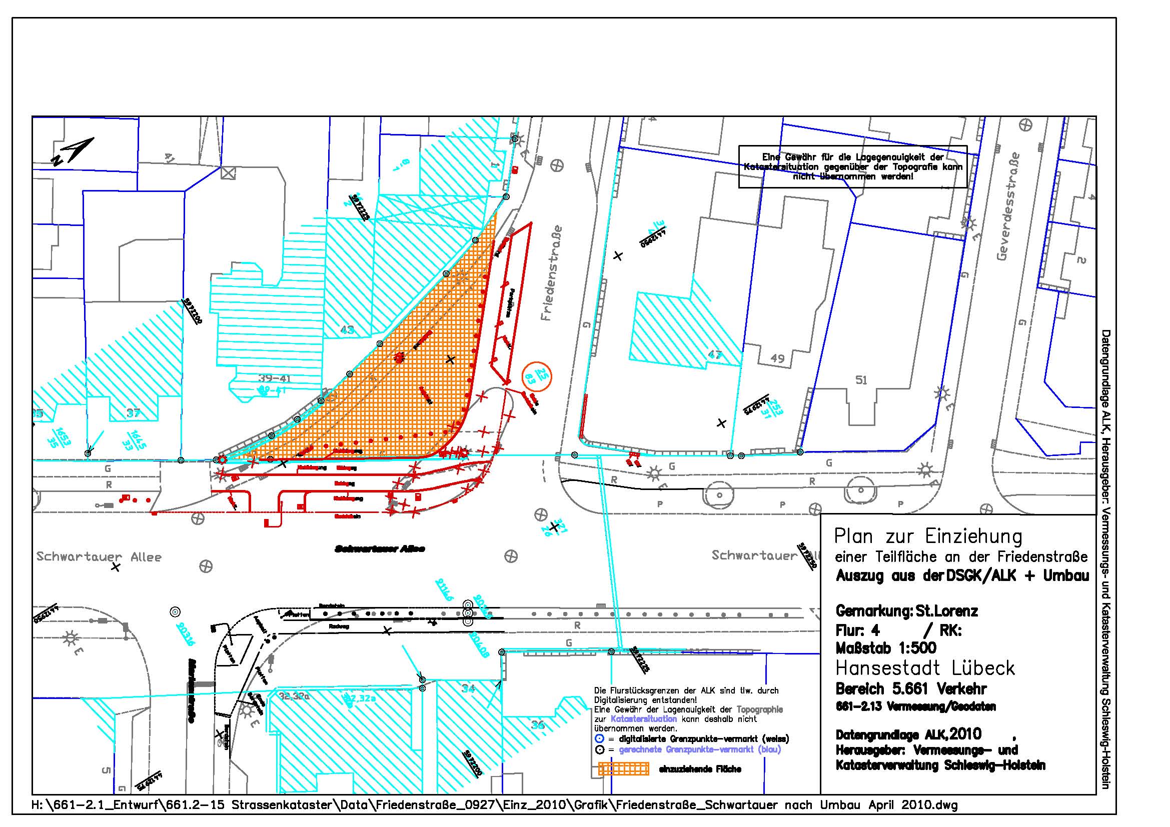 In der Zeit vom 27.10.2010 bis 29.11.2010 hängt der Plan der einzuziehenden Fläche im Fachbereich 5 Planen und Bauen der Hansestadt Lübeck, Mühlendamm 12, im i-Punkt (Foyer/ Erdgeschoss) während der Geschäftszeiten: