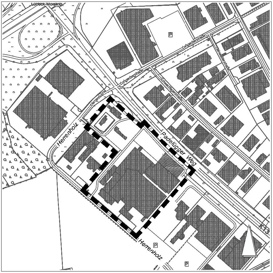 Der Bauausschuss der Hansestadt Lübeck hat in seiner Sitzung am 15.03.2010 beschlossen, für das nachfolgend dargestellte Gebiet den Bebauungsplan 22.55.08 – Herrenholz Einkaufszentrum – aufzustellen.