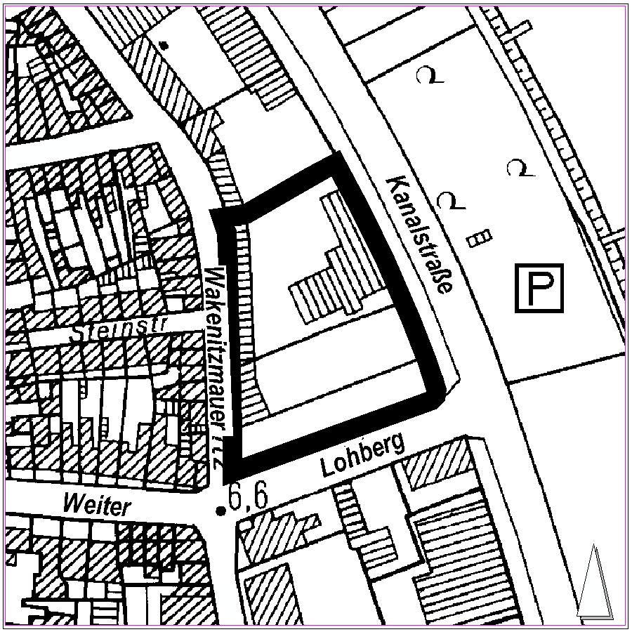 Der räumliche Geltungsbereich dieses vorhabenbezogenen Bebauungsplanes liegt im Stadtteil Innenstadt. Das Gebiet wird begrenzt durch die Kanalstraße im Osten, die Straße „Weiter Lohberg“ im Süden, die Straße „Wakenitzmauer“ im Westen sowie das Flurstück eines Sportvereins im Norden.